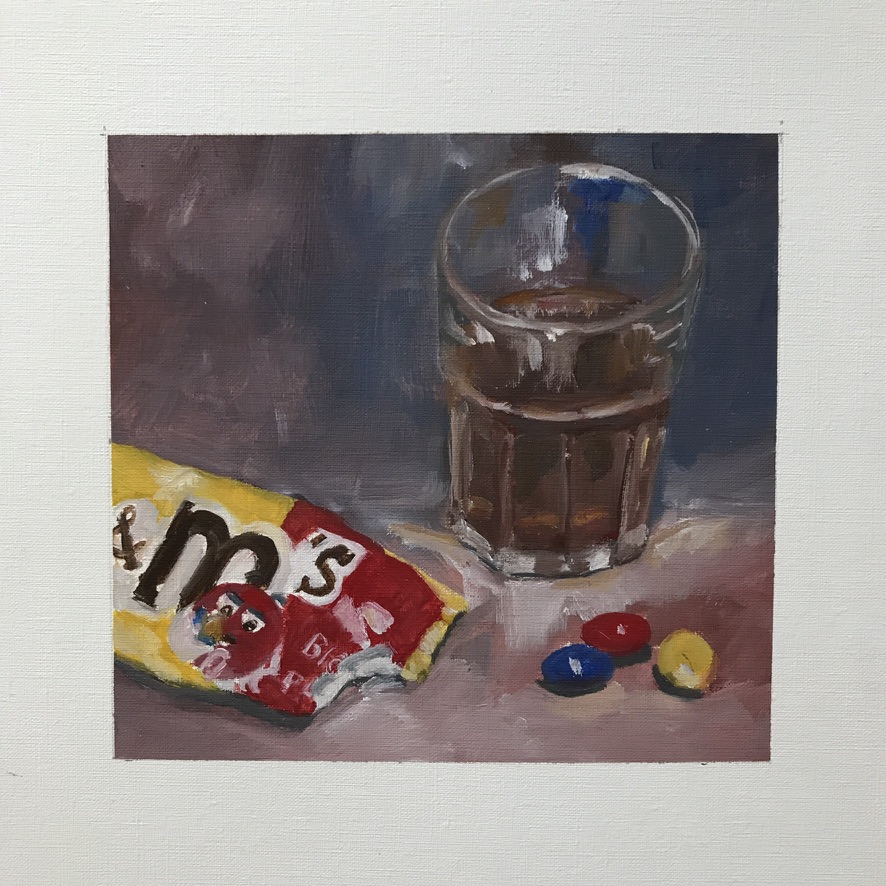 Deze maakte ik op 26 maart. Een glas thee met heerlijke m&m's. Een mooie smoes om m&m's in huis te halen. Tja als je het wil schilderen, is het wel zo prettig als je een voorbeeld op je tafel neer kan leggen. :-)